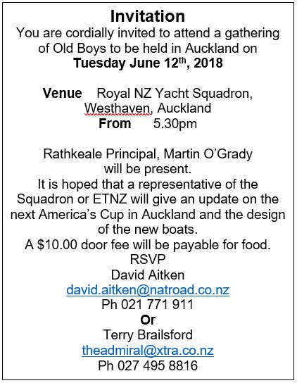 It is with sadness that the Association learnt of the death of Fed Lee in Whangamata three weeks ago. Fred joined the College staff in 1968 and was twenty first on the College Staff Register. For many years he taught Technical Drawing, over saw school detentions and supervised swimming.Upon his retirement, he and wife Pat, who had been School Librarian for some years, moved to the Coromandel. We have extended our sympathy to the Lee family. 10 Years On Reunion – Queen’s Birthday Weekend – 1st to 3rd June This important weekend is rushing towards us and we are thrilled with the response of many Old Boys. Already one-year group reports over 70 attendees at their Saturday evening dinner – fantastic! Remember we really would like to see as many of the various cohorts who left on an 8 year – 1968, 78, 88, and 08. So, contact your year group facilitator listed below as soon as possible.